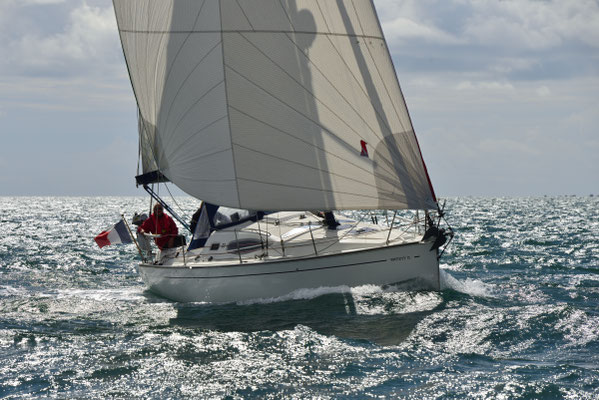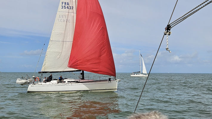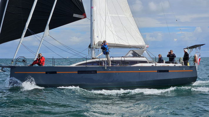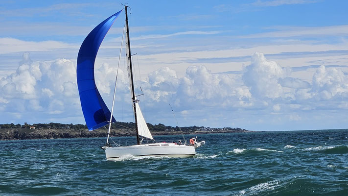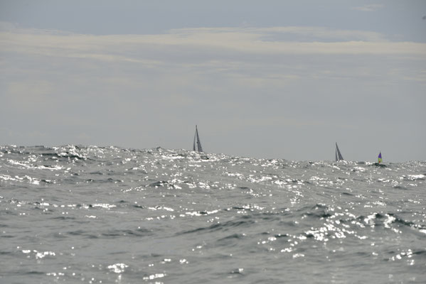 Les bateaux, selon leurs tailles ont été entre 6 et 9 kns. Sweety, sous code0, Tusitala sous gennaker, Claire de l'Hune sous Code5, puis sous son spi bleu de 100 m²