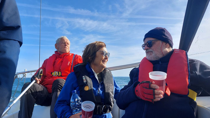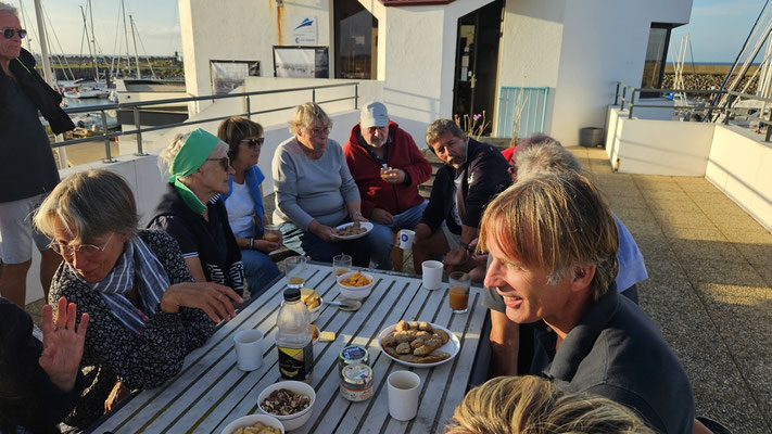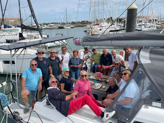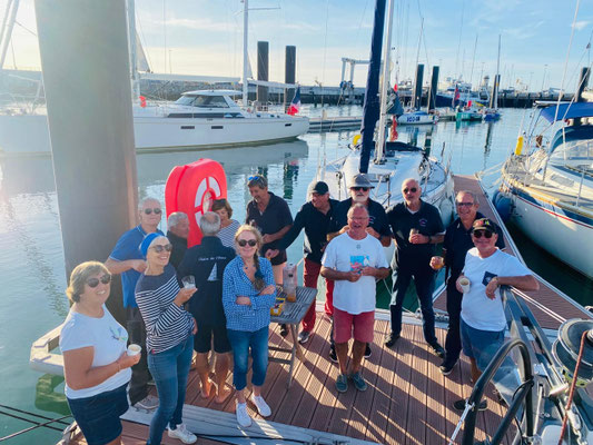 Nous sommes arrivés tous ensembles au port. Pot de fin du rallye devant Claire de l'Hune avant que tout le monde se disperse.